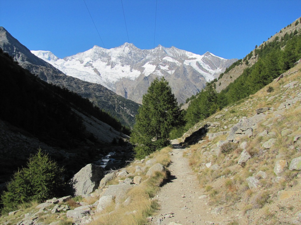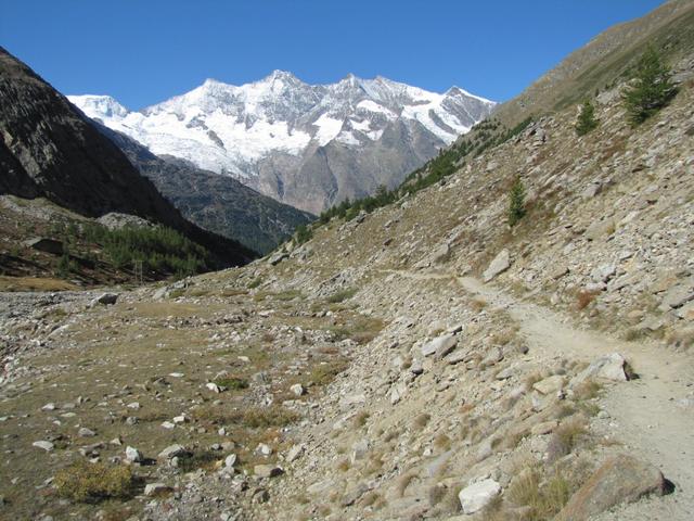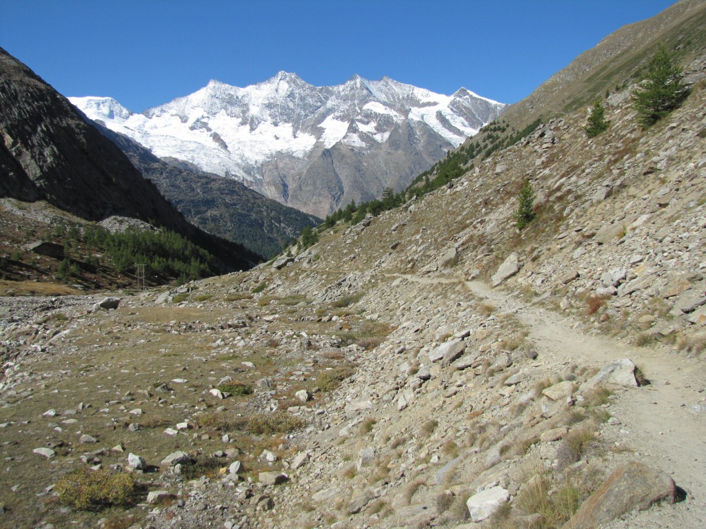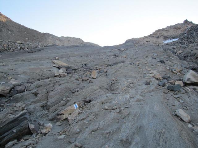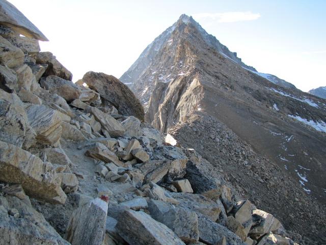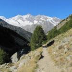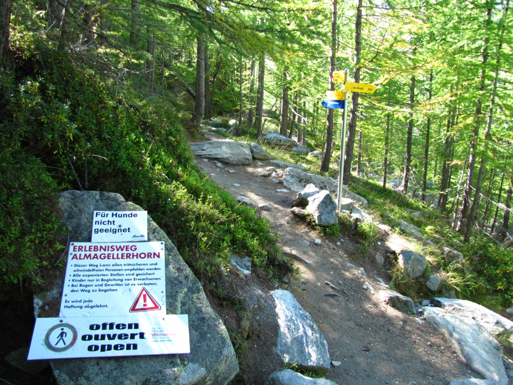 zu Beginn ist der Weg weiss-blau-weiss markiert, aber nur wegen dem Teilstück das zum Weissmies führt