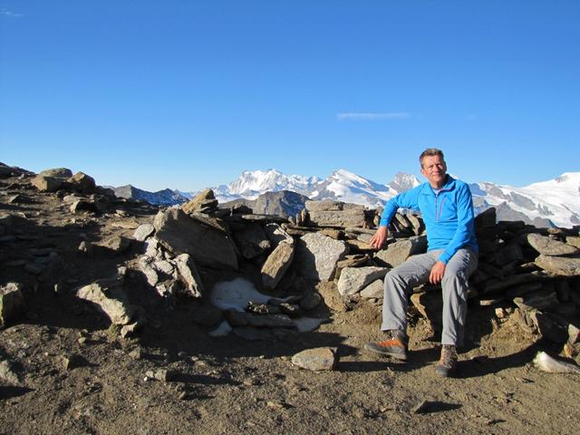 Erinnerungsfoto aufgenommen auf dem Zwischbergenpass. Mitten im Bild der Dom. Den Namen trägt er zu Ehren des Domherren von Sio