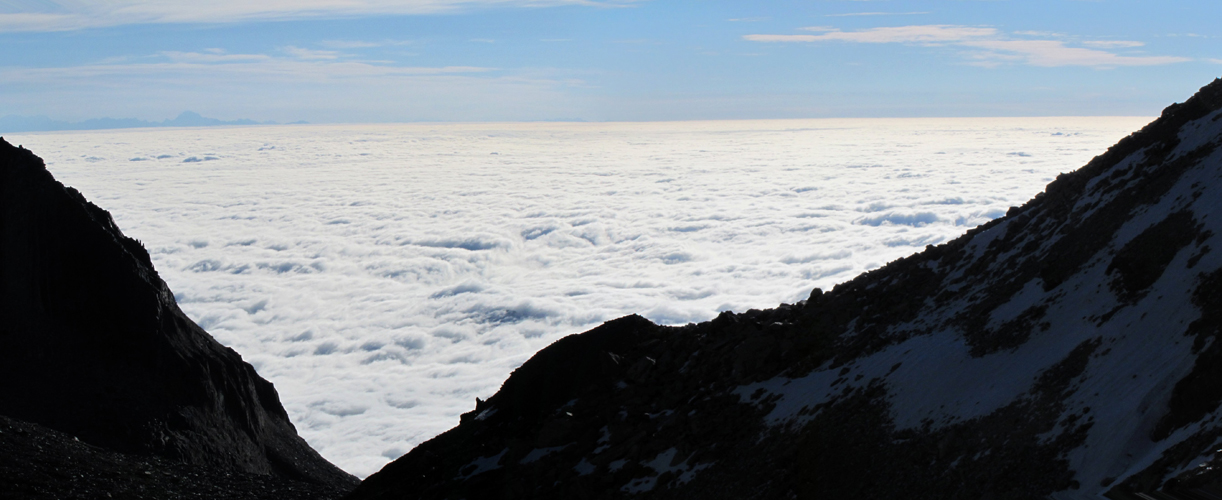 schönes Breitbildfoto. Blick nach Italien und auf eine nicht endende Nebeldecke