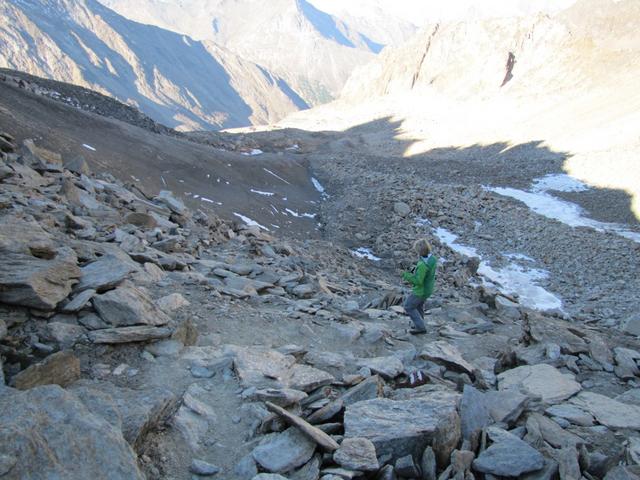 wir haben die Almagellerhütte verlassen und beginnen mit dem Abstieg