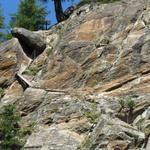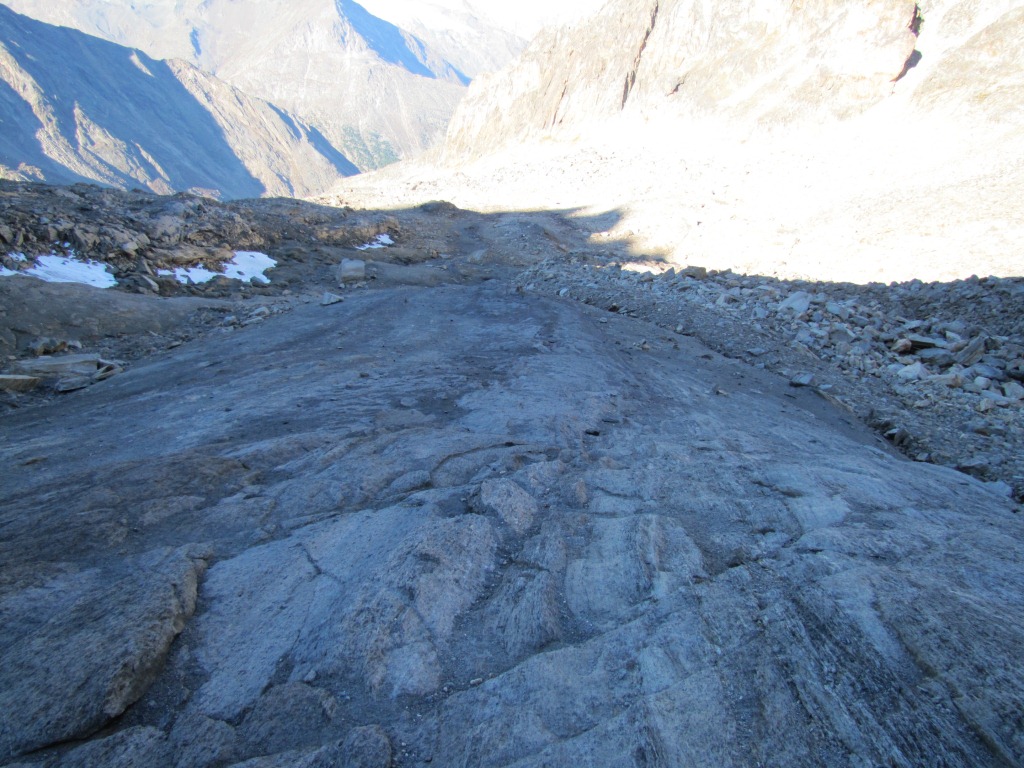 über diese glattgeschliffenen Felsplatten geht es weiter abwärts