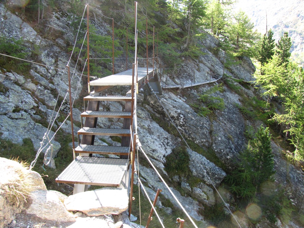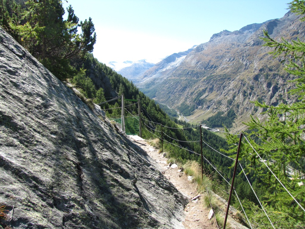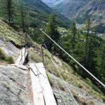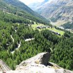 fast senkrecht geht es runter. Tiefblick nach Saas-Almagell