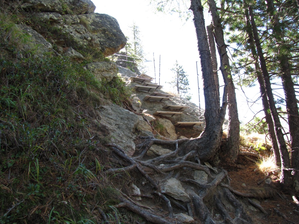 dann geht es wiederum über Holztreppen steil aufwärts