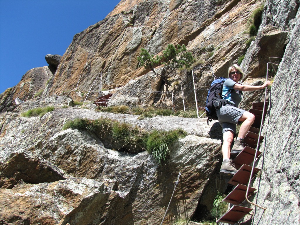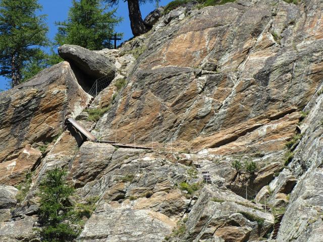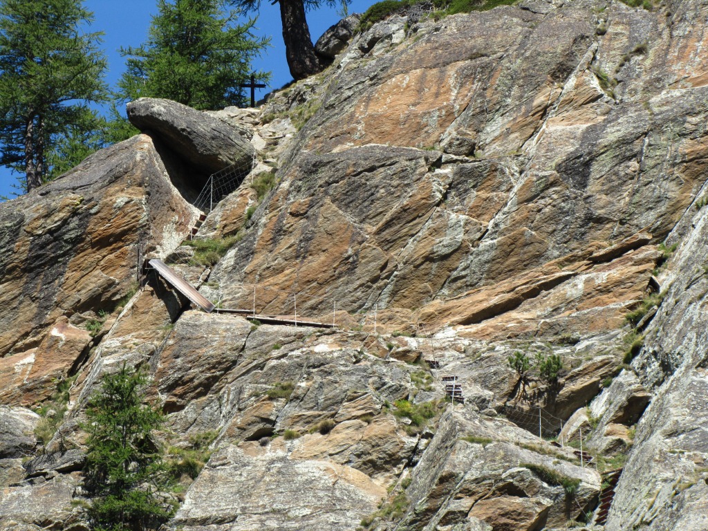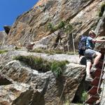 der Weg führt über steile Felsbänder. Den Erlebnisweg sollte man nur bei günstiger Witterung erleben