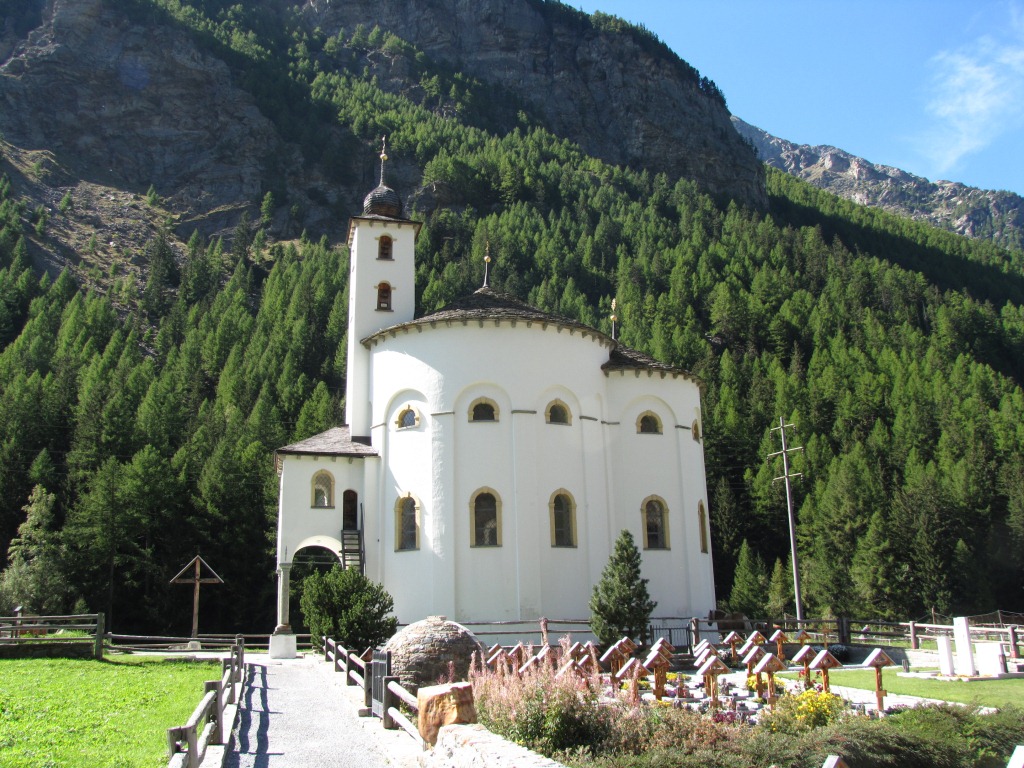 wir besuchen die kleine sehr schön renovierte Kirche von Furggstalden