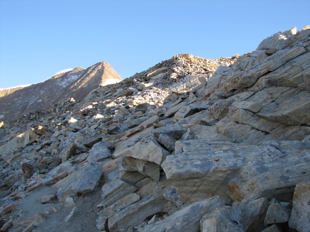 die Einsattelung die man von hier aus sieht, ist nicht der eigentliche Pass. Der befindet sich links davon Datum 27.01.2014