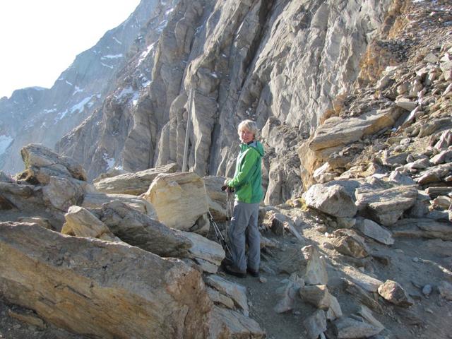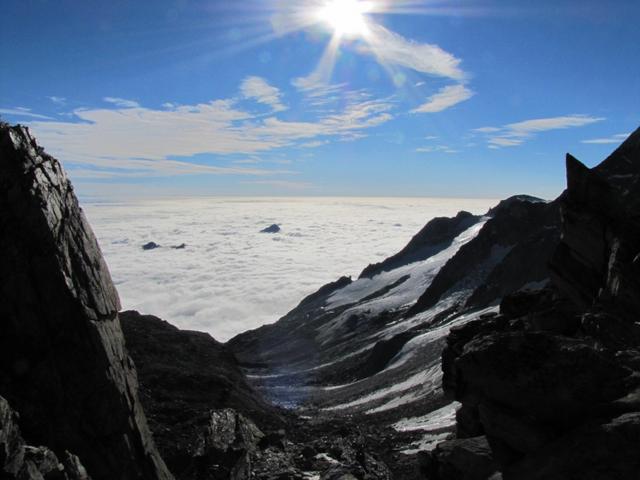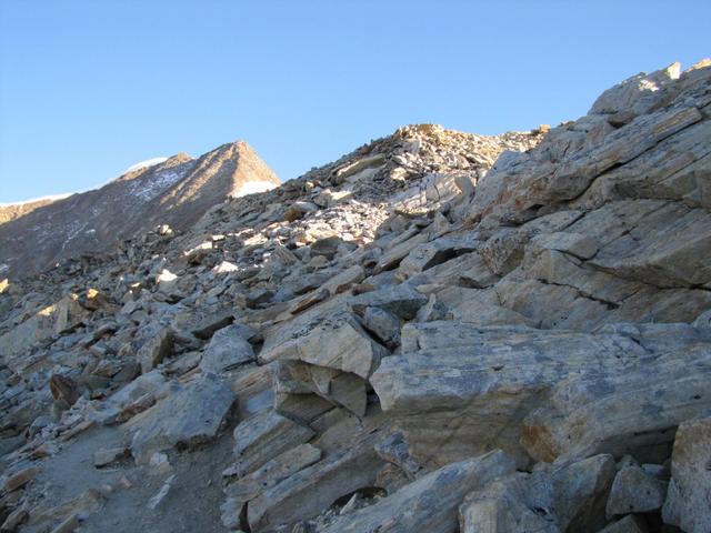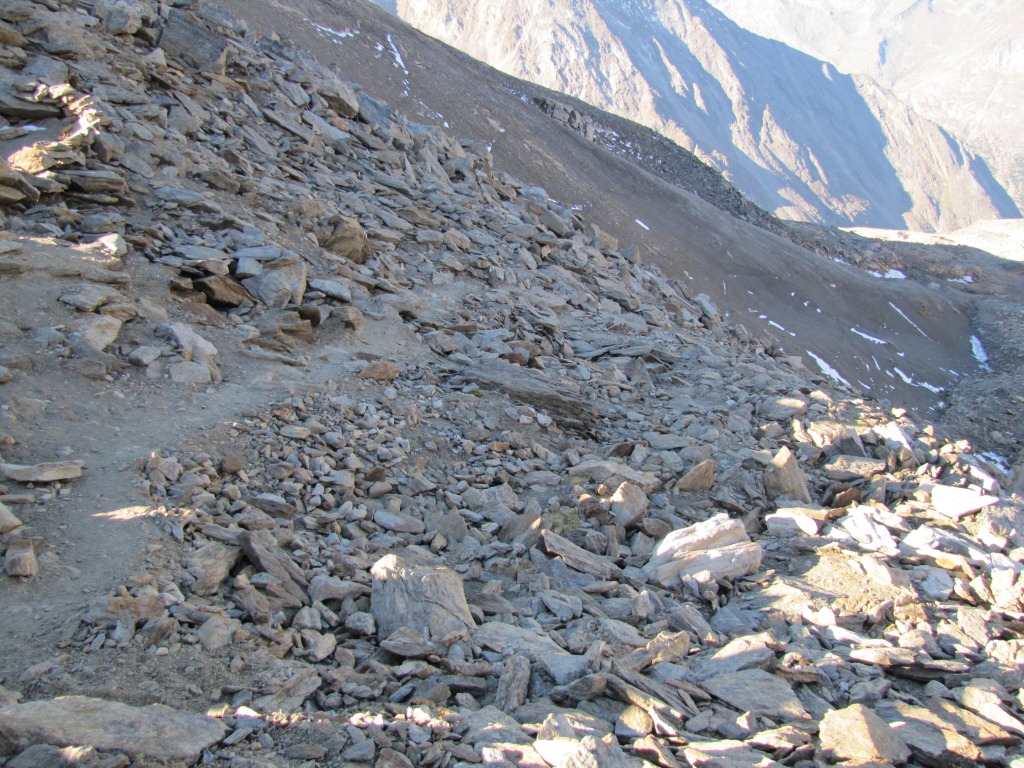 kurz unterhalb vom Grat, führt der Bergpfad nun zum Zwischbergenpass Datum 27.01.2014