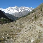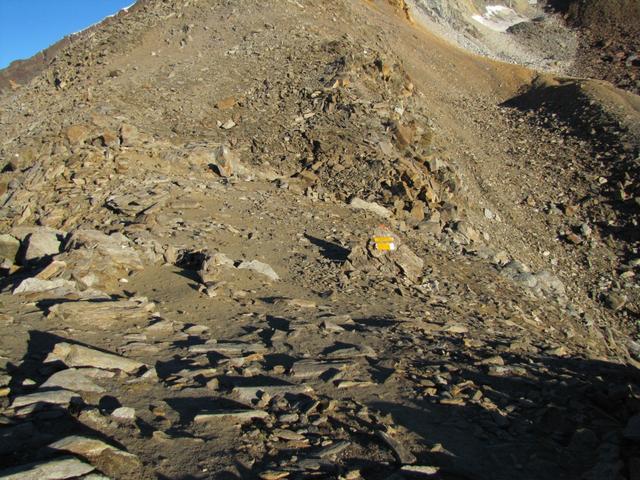 zu Beginn ist der Weg weiss-blau-weiss markiert, aber nur wegen dem Teilstück das zum Weissmies führt Datum 27.01.2014