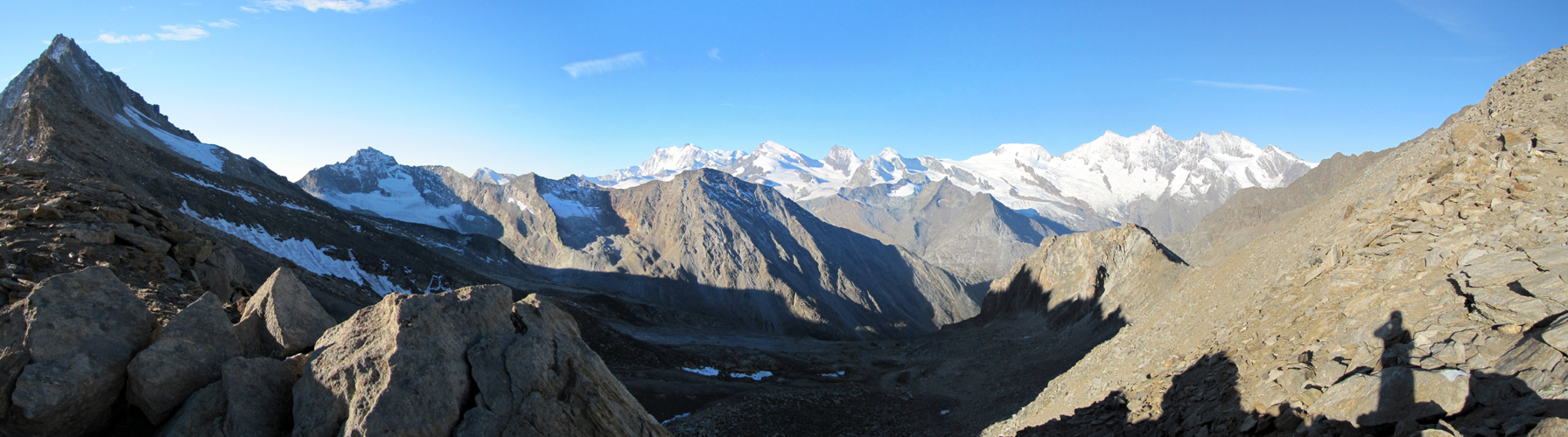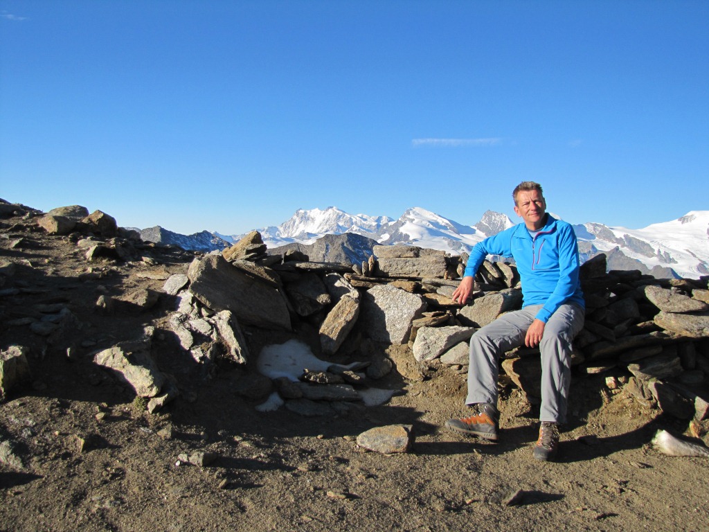 Erinnerungsfoto aufgenommen auf dem Zwischbergenpass. Mitten im Bild der Dom. Den Namen trägt er zu Ehren des Domherren von Sio Datum 08.04.2015