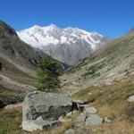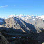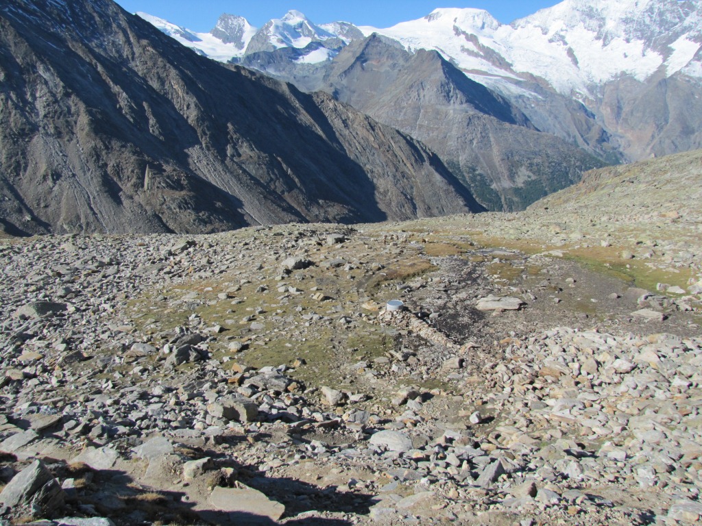 Blick auf den Zwischbergengletscher. Der Gletscher ist mit einer dicken Geröllschicht überdeckt Datum 27.01.2014