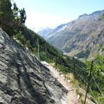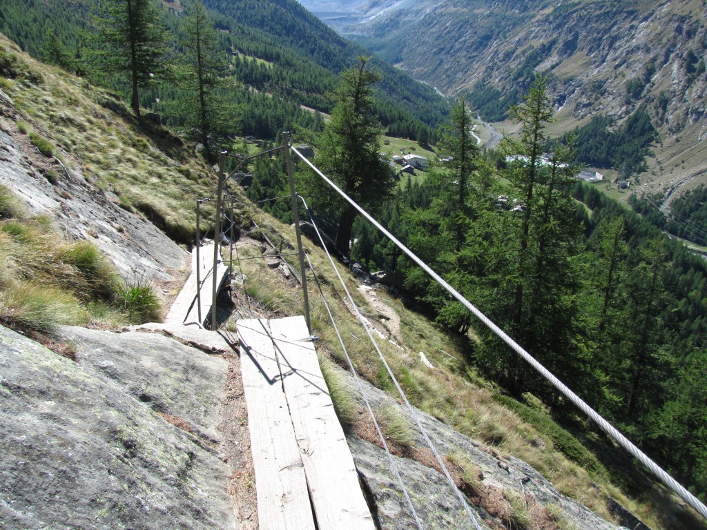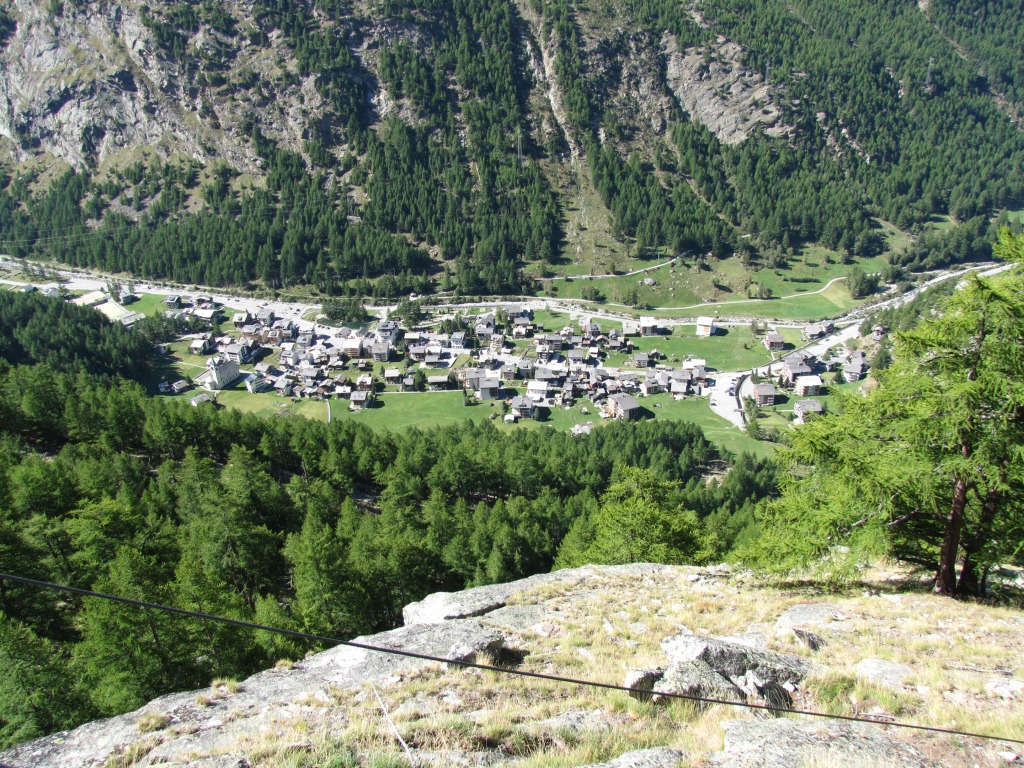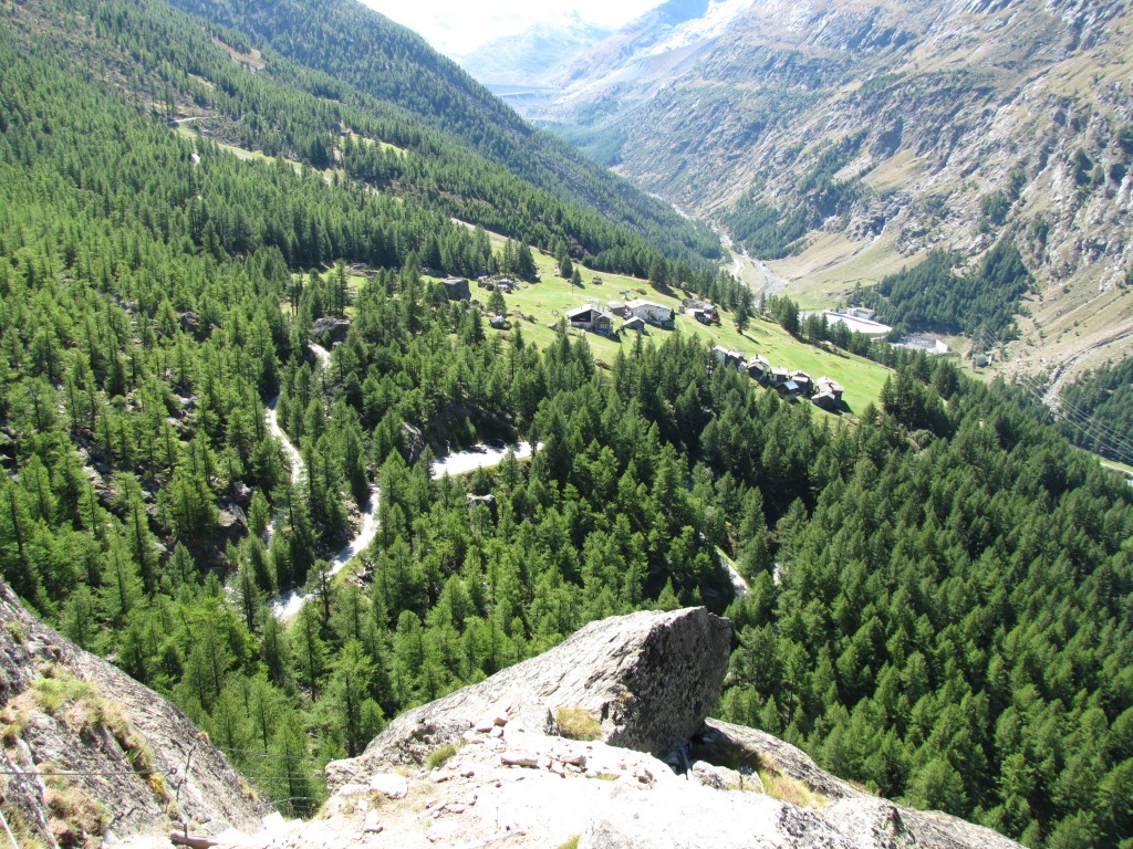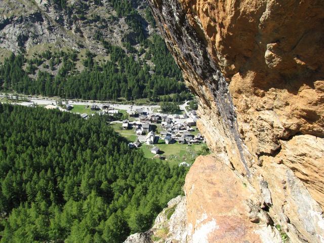 fast senkrecht geht es runter. Tiefblick nach Saas-Almagell Datum 29.01.2014