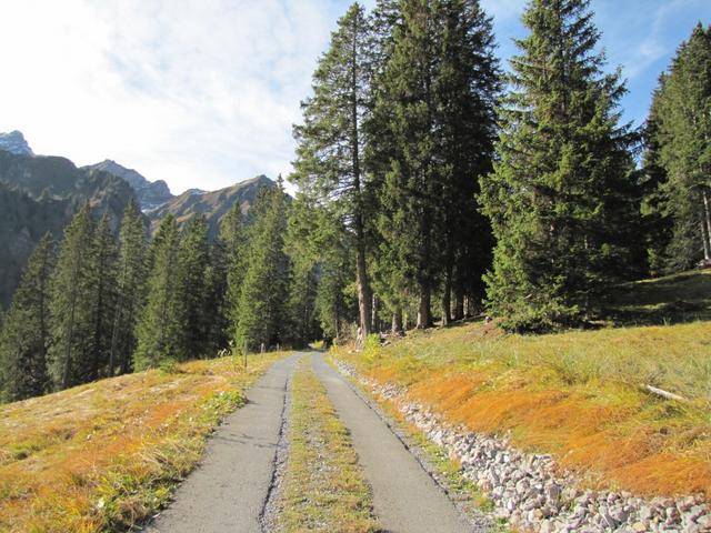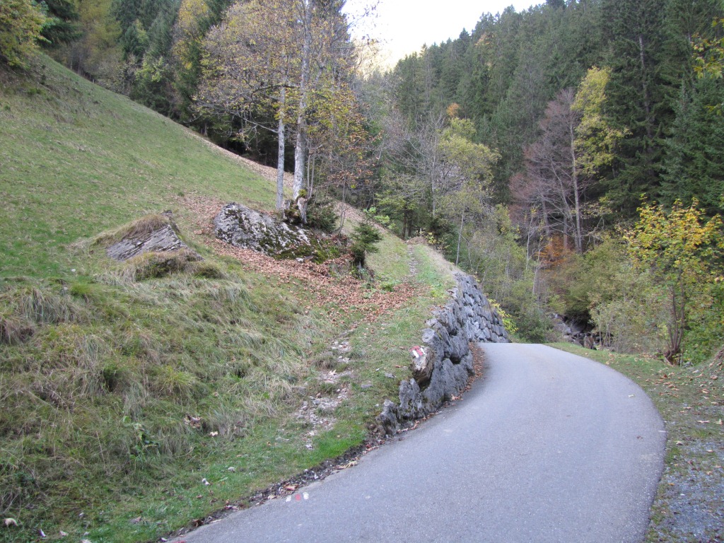kurz nach Punkt 1546 m.ü.M. wandert man ein kurzes Stück auf der Alpstrasse Datum 06.02.2013