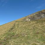 der Bergpfad führt weiter an der Abbruchkante entlang aufwärts Datum 06.02.2013