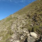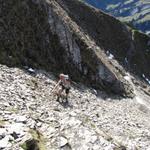 der Weg führt nun über feines Geschiebe und Geröll steil abwärts Datum 07.02.2013