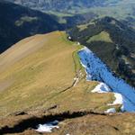 über den Westgrat führt der Abstieg nun Richtung Aeschiried Datum 07.02.2013