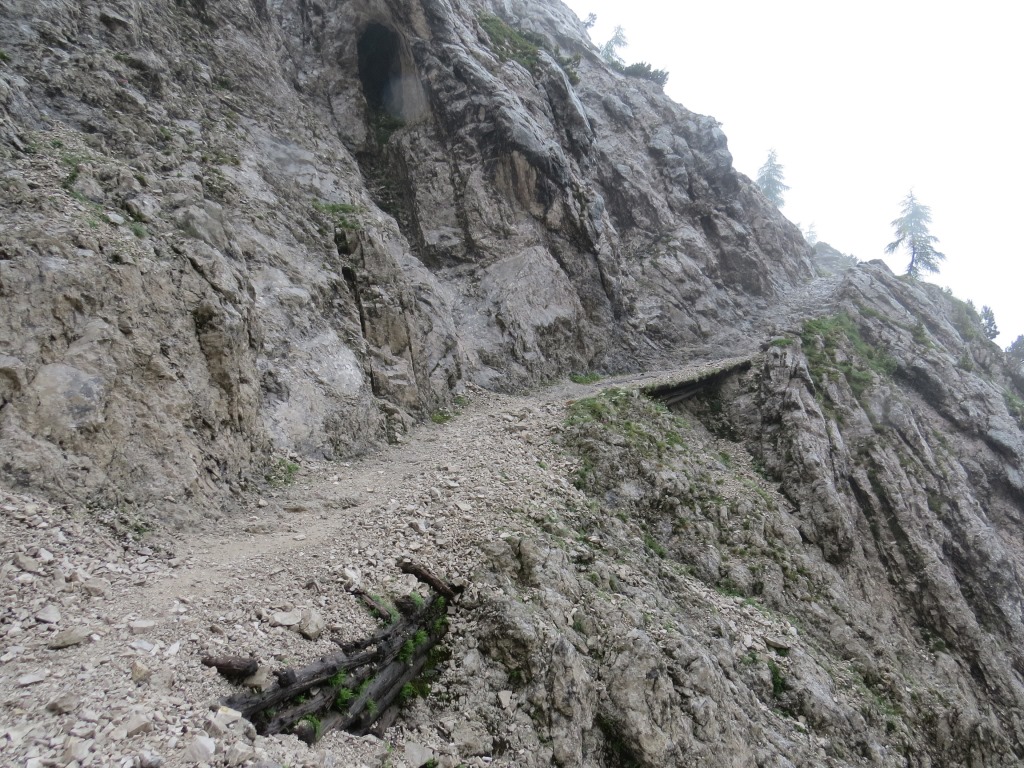 der Bergpfad führt uns durch den Durchschlag - eine steile Schotterrinne