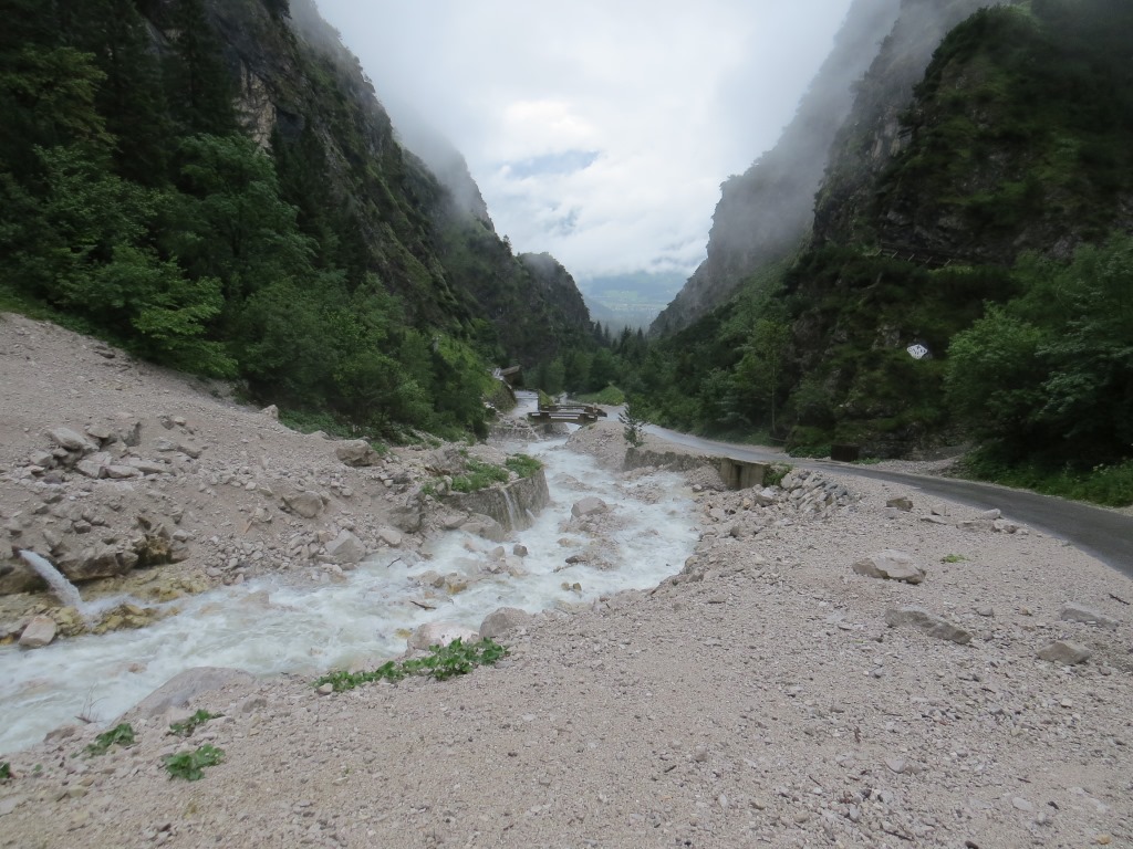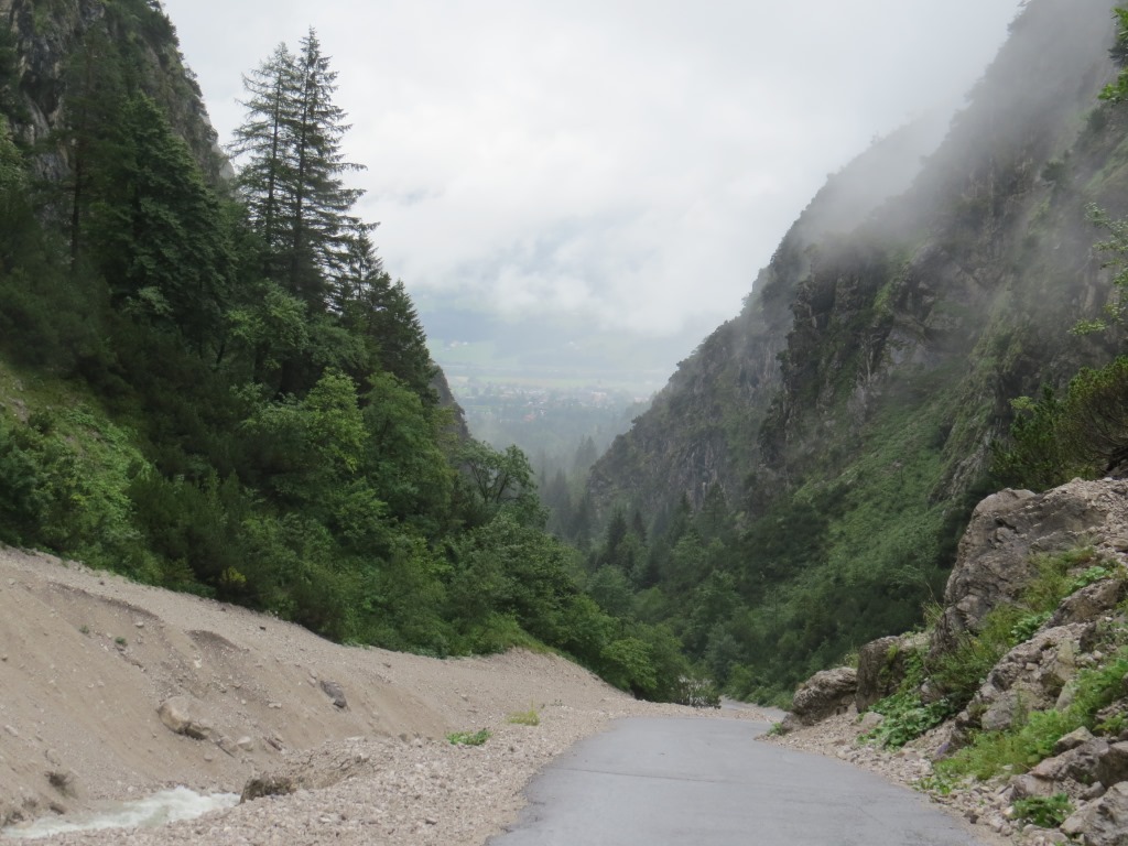 über das Halltal geht es nun über eine Asphaltstrasse abwärts nach Hall