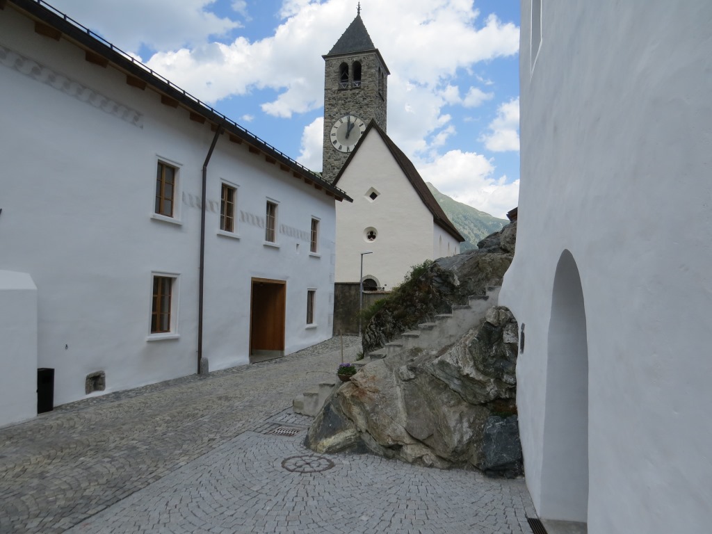 am Planta Turm 13.Jhr. vorbei, zwischen schön restaurierten Engadiner Häusern hindurch...