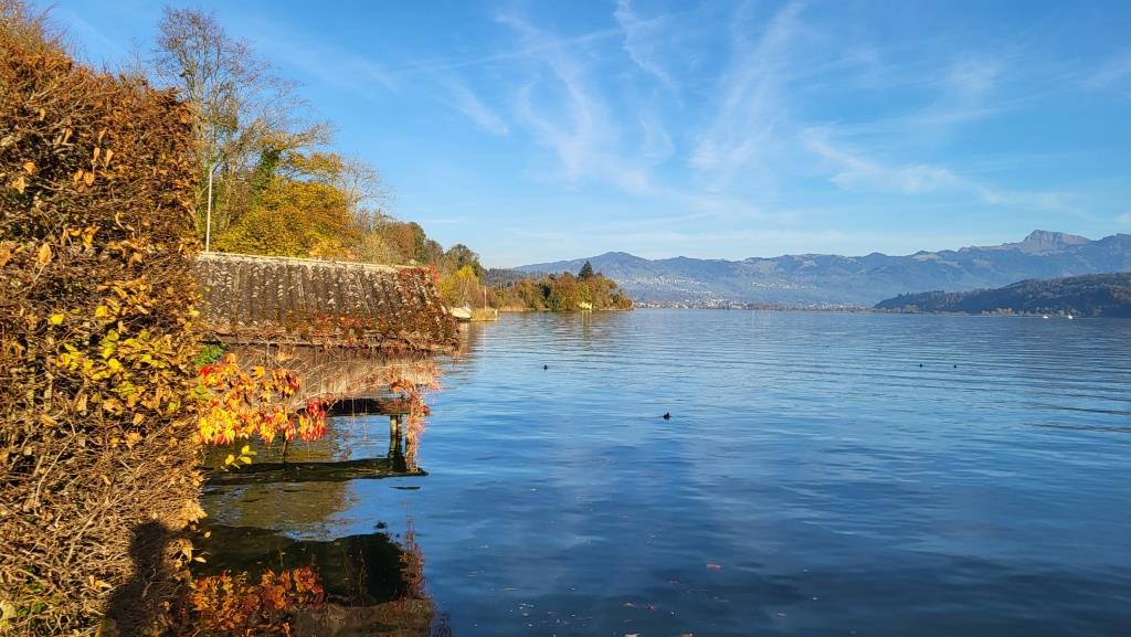 immer über offenes Gelände, den Blick auf das glitzernde Wasser gerichtet, wandern wir weiter Richtung Schmerikon