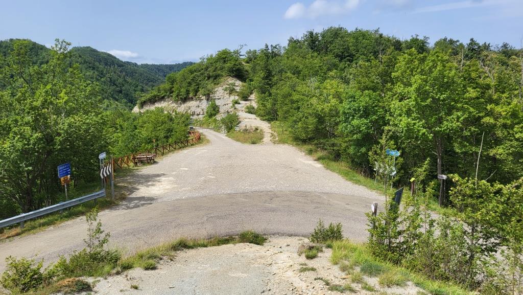 ...die Weggabelung wo wir am Vortag Richtung Portico di Romagna abgebogen sind