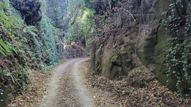 der Wanderweg Untergrund wechselt nun vom Basaltstein auf eine alte Römerstrasse