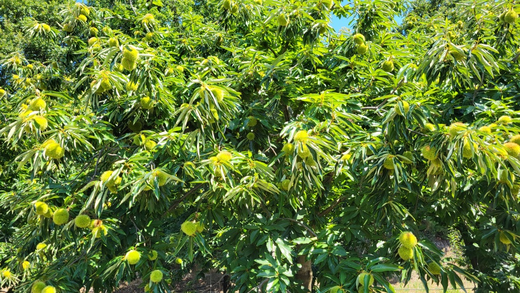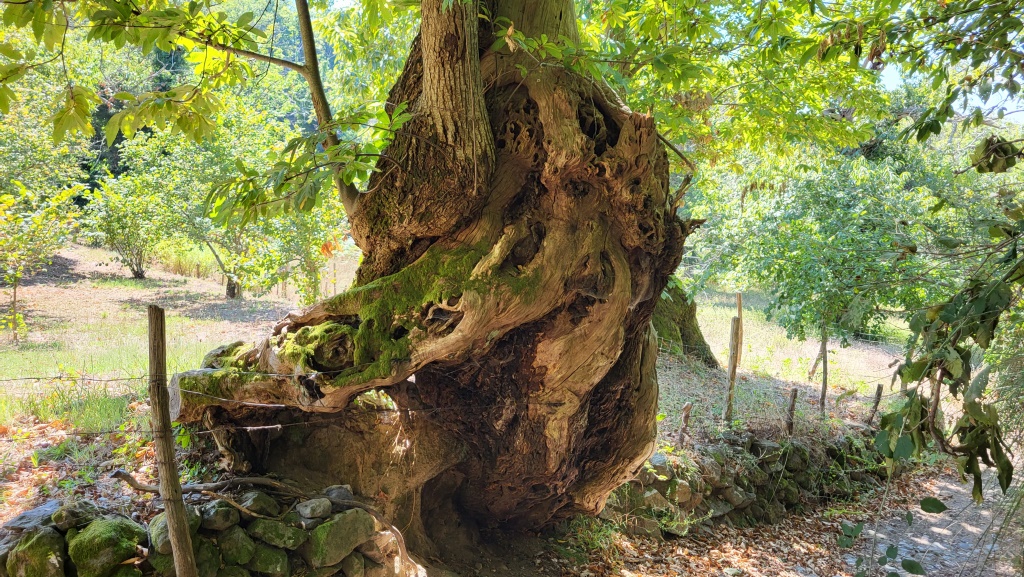 die Kastanienbäume sind zum Teil uralt. Wir bestaunen wunderschöne uralte Baumstämme