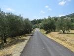 Olivenbäume stehen Spalier als wir den Dorfeingang von Cusercoli erreichen