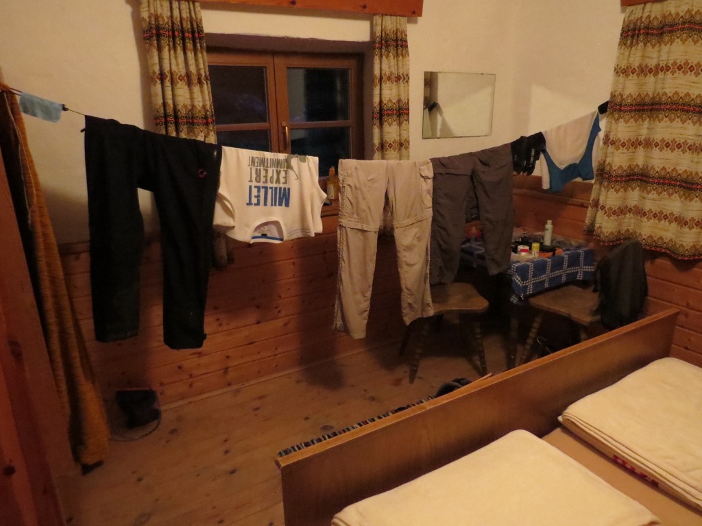 im Schlafzimmer haben wir die feuchten Kleider aufgehängt