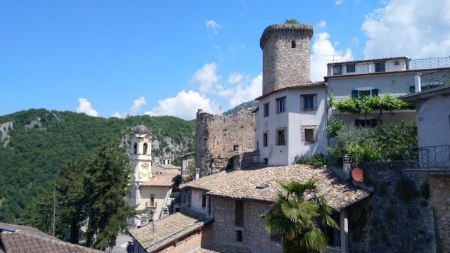 wir blicken zurück nach Cantalice mit Wehrturm