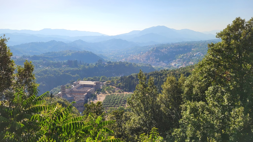 auf dem Platz vor dem Kloster schauen wir hinunter nach Subiaco...