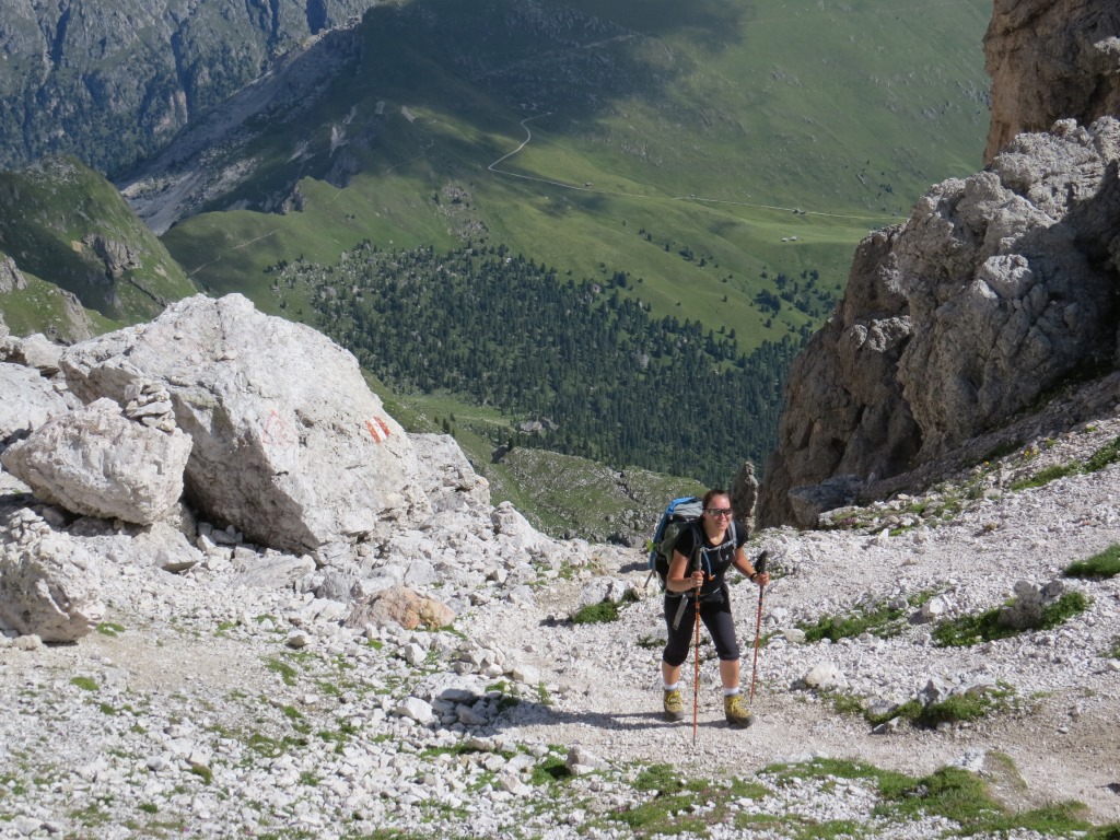 der Weg führt nun wieder steil aufwärts zur Forcella de Sieles Datum 19.09.2014