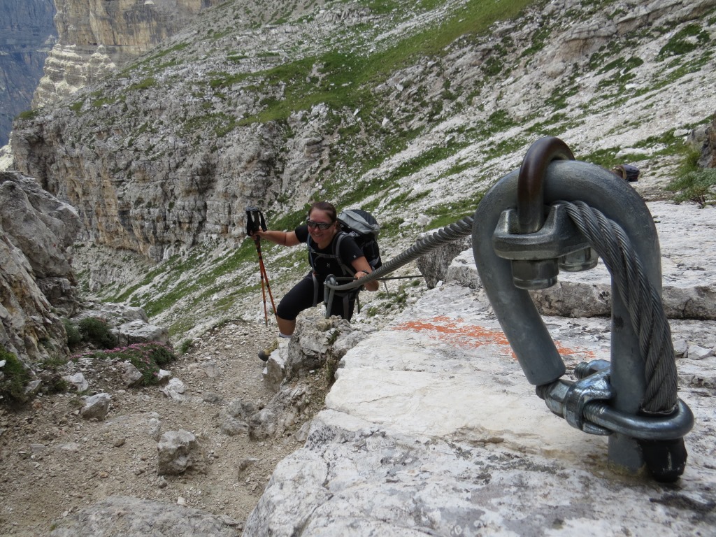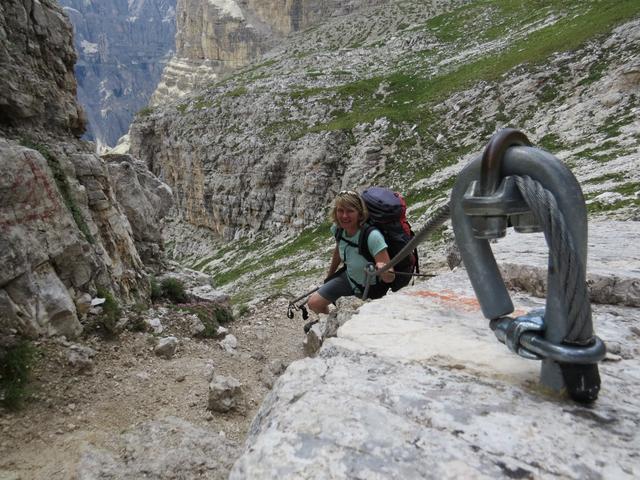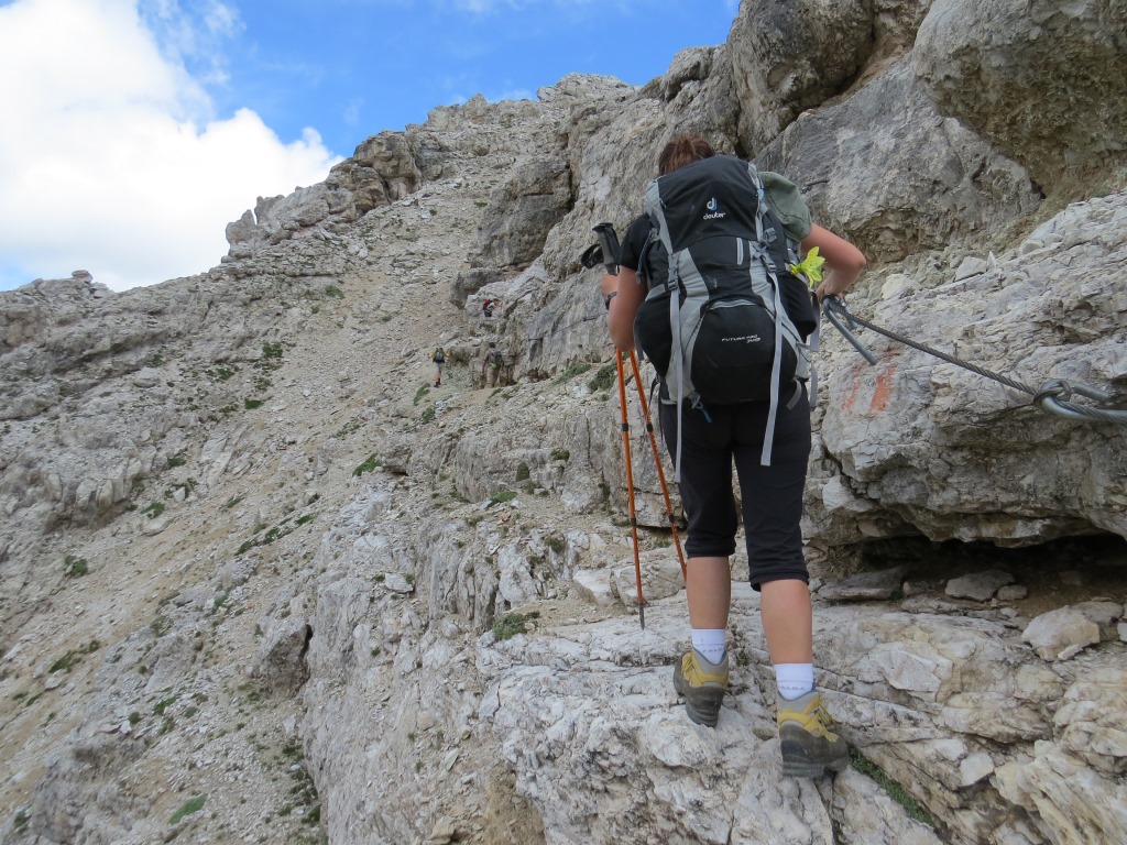 von der Forcella de Sieles führt uns ein stahlseilversicherter Steig weiter aufwärts Datum 19.09.2014