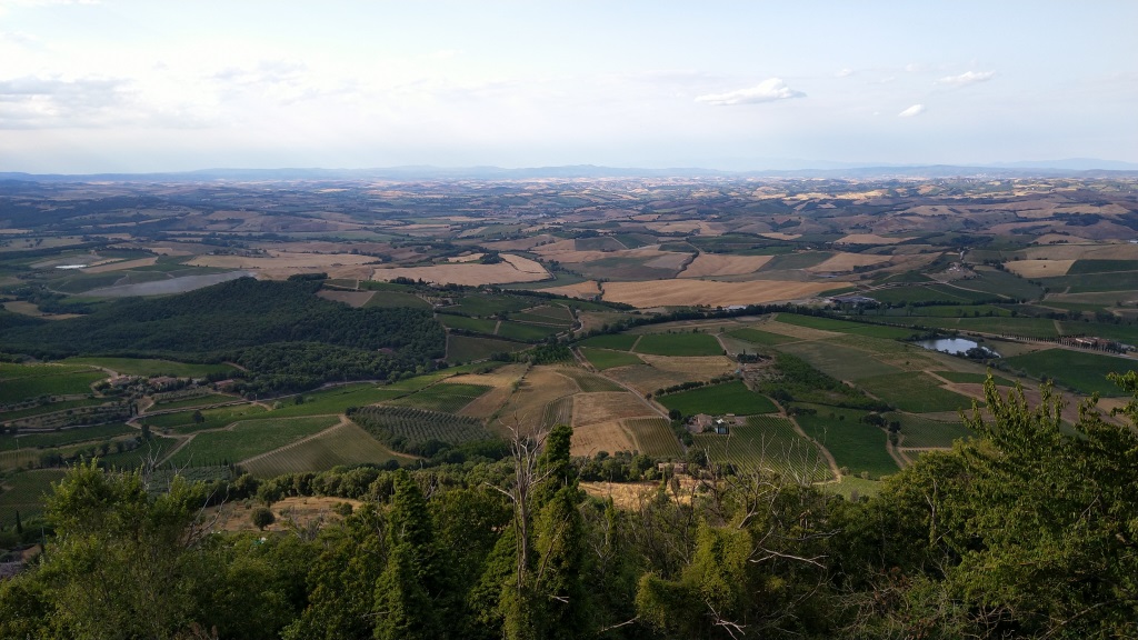 vom Aussichtspunkt in Montalcino (das wegen seinen sehr guten Weinen bekannt ist),...