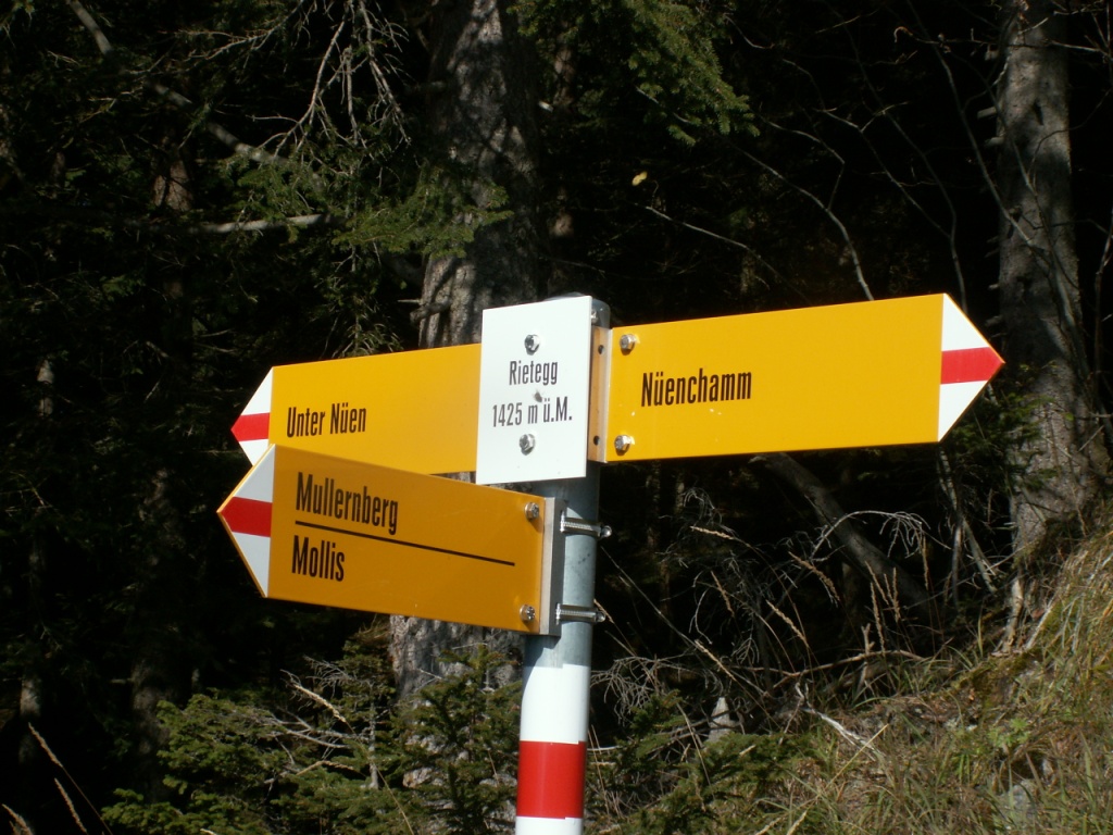 Wegweiser bei Rietegg 1425 m.ü.M. Datum 04.12.2008