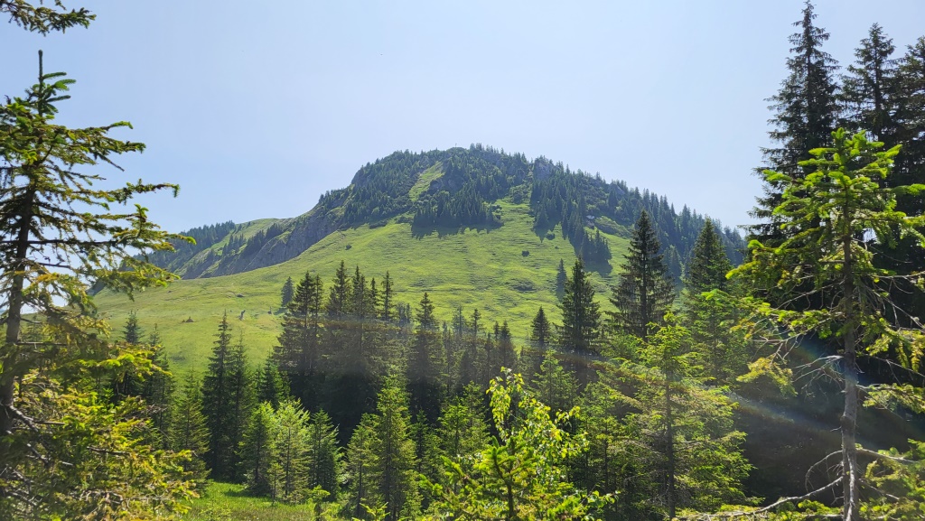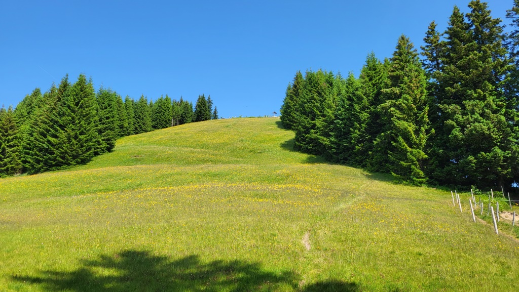 auf der anderen Bergseite kommen die beiden Wegvarianten wieder zusammen. Gleichzeitig erscheint die Hirsch-Alpe