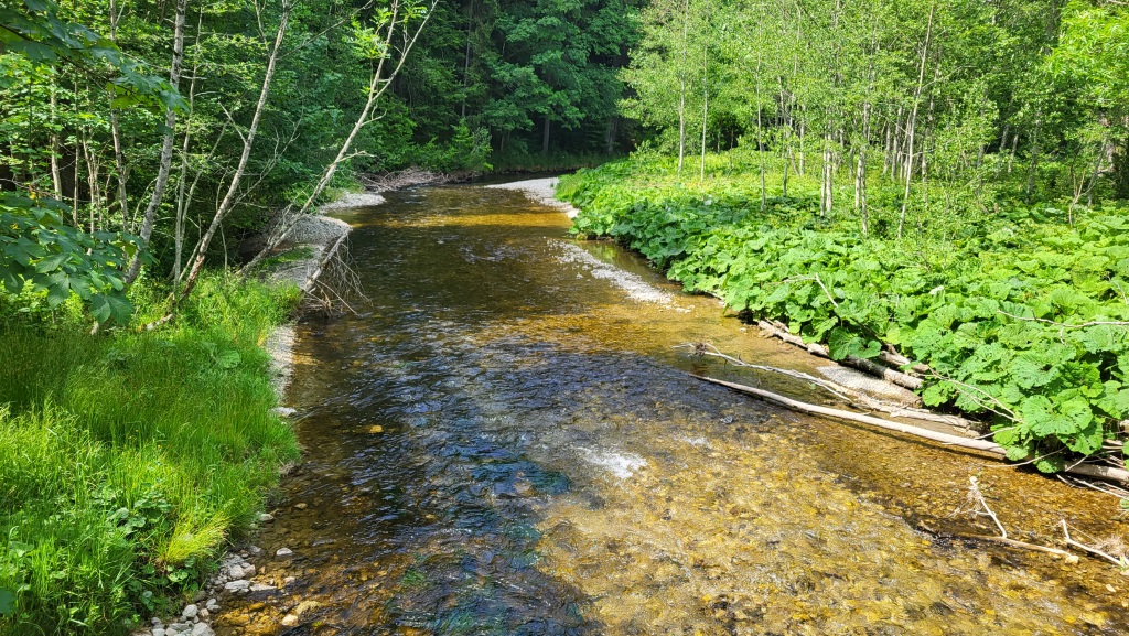 immer entlang des mäandrierendem naturbelassenen Baches der sich durch das Tal schlängelt geht es Talauswärts