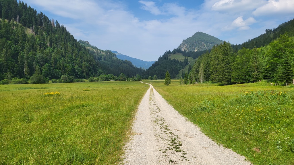 auf Tiroler Boden wandern wir leicht abwärts ins Vilstal hinein