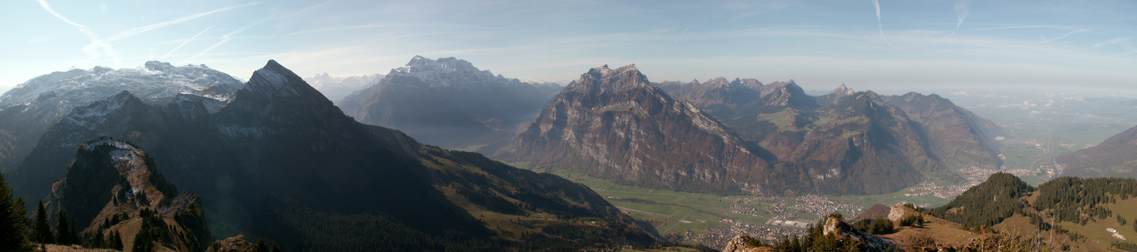 Breitbildfoto Glärnisch, Wiggis, Rautispitz und und und