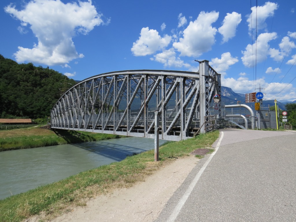 über eine ehemalige Eisenbahnbrücke überqueren wir die Etsch Datum 06.06.2023
