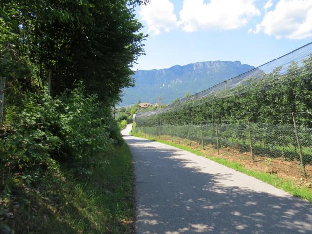 zwischen Obstbäumen und Reben geht es Richtung Kalterer See-Lago di Caldaro Datum 06.06.2023