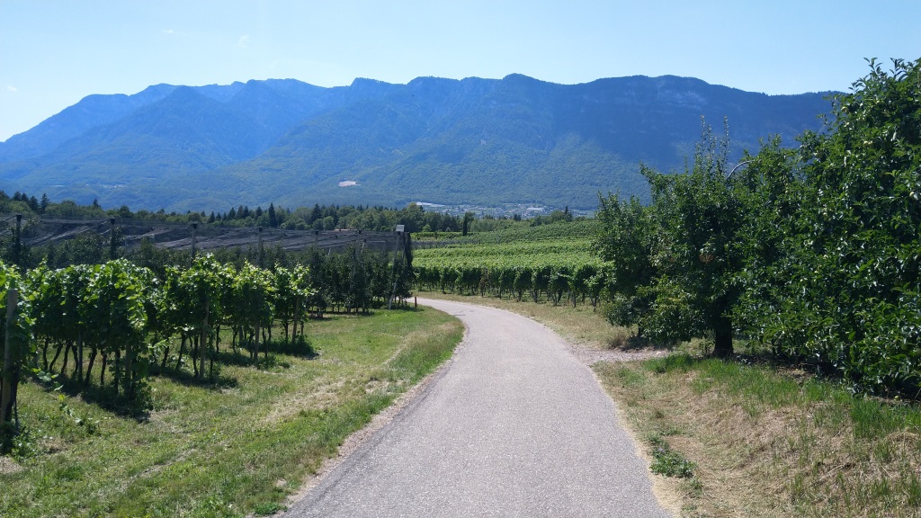 ...oder zwischen Rebberge. Rechts von uns verläuft die berühmte Weinstrasse Richtung Trento Datum 06.06.2023