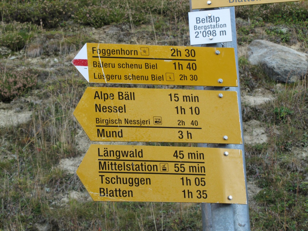 Wegweiser beim Hotel Belalp Datum 17.01.2012