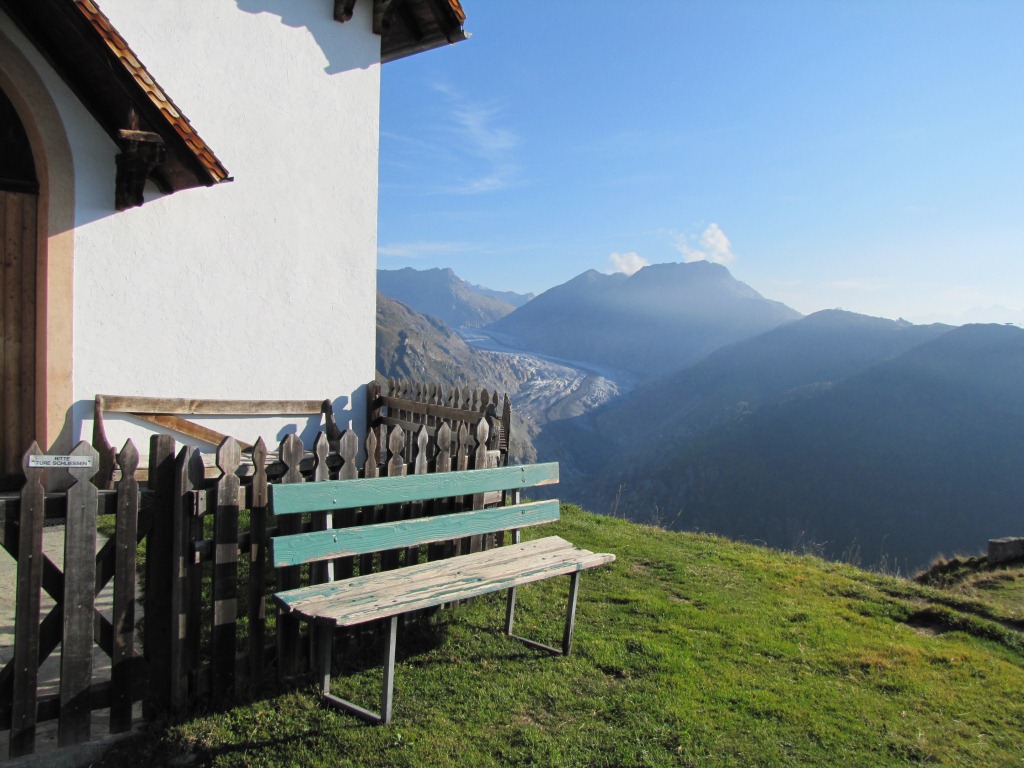 bei der Kapelle beim Hotel Belalp mit Blick zum Grossen Aletschgletscher und Eggishorn. Am Vortag waren wir dort oben Datum 18.01.2012