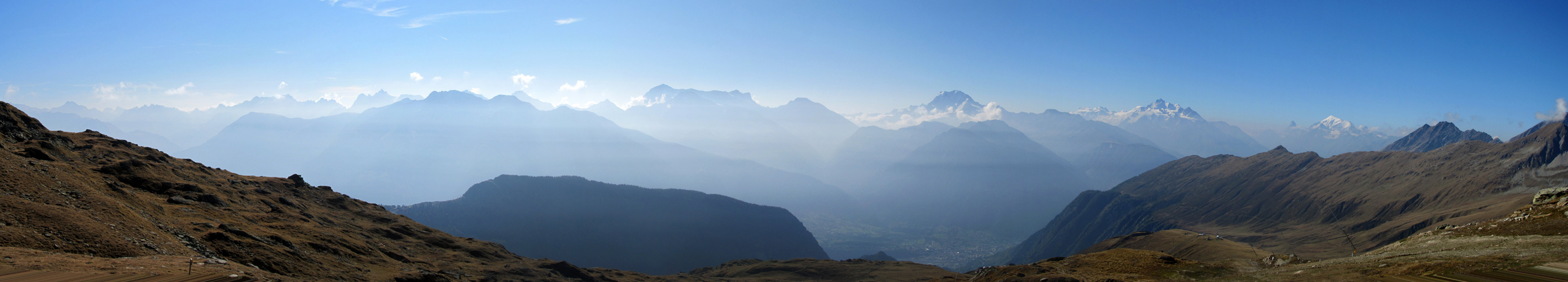 was für ein schönes Breitbildfoto. Blick Richtung Süden. Alle Walliser Berge, schön aufgereiht Datum 07.02.2017
