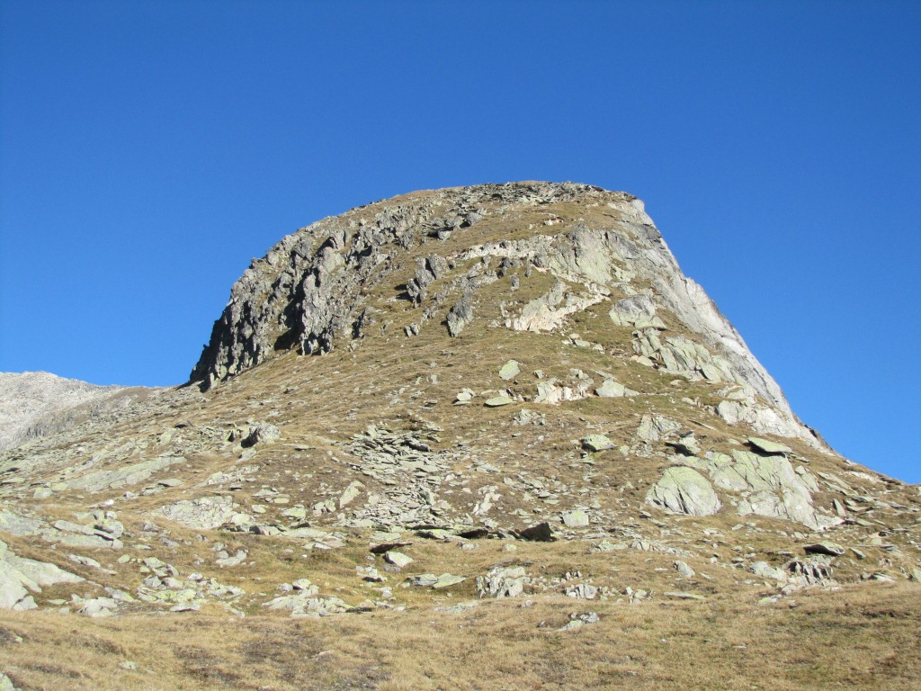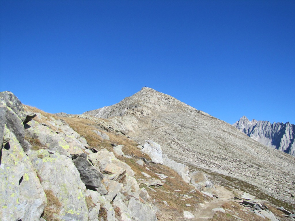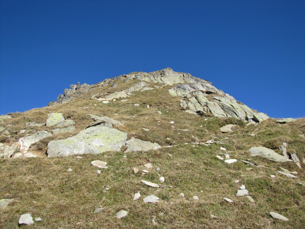 rechts unter der felsigen Gratschneide geht die Wanderung weiter, bis unter den Gipfelaufbau Datum 18.01.2012