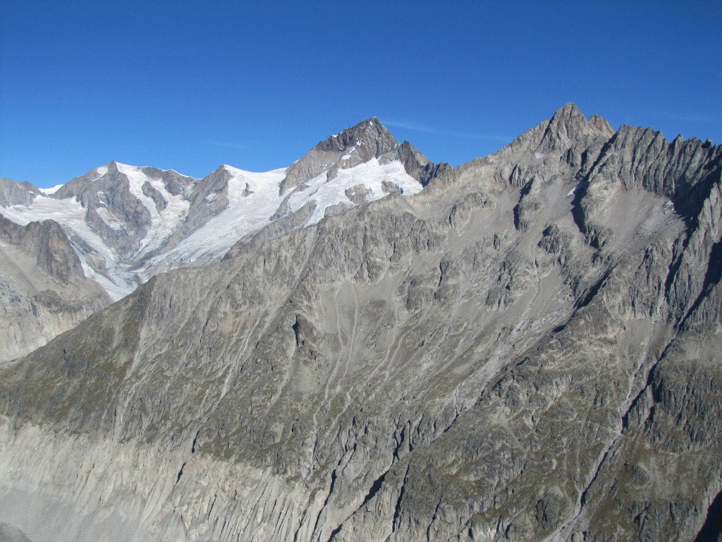 Breitbildfoto Wysshorn, Sattelhorn, Aletschhorn, Gr. Fusshorn und der Oberaletschgletscher Datum 07.02.2017