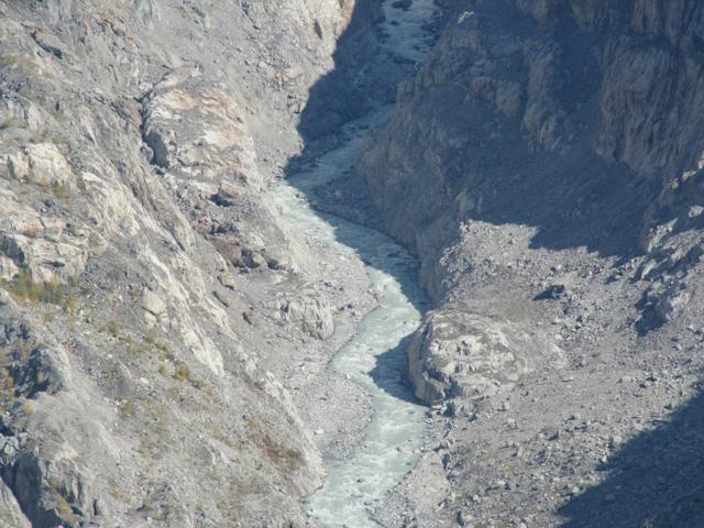 Tiefblick auf die Massaschlucht die der Gletscherbach gegraben hat. Dort runter müssen wir noch Datum 18.01.2012