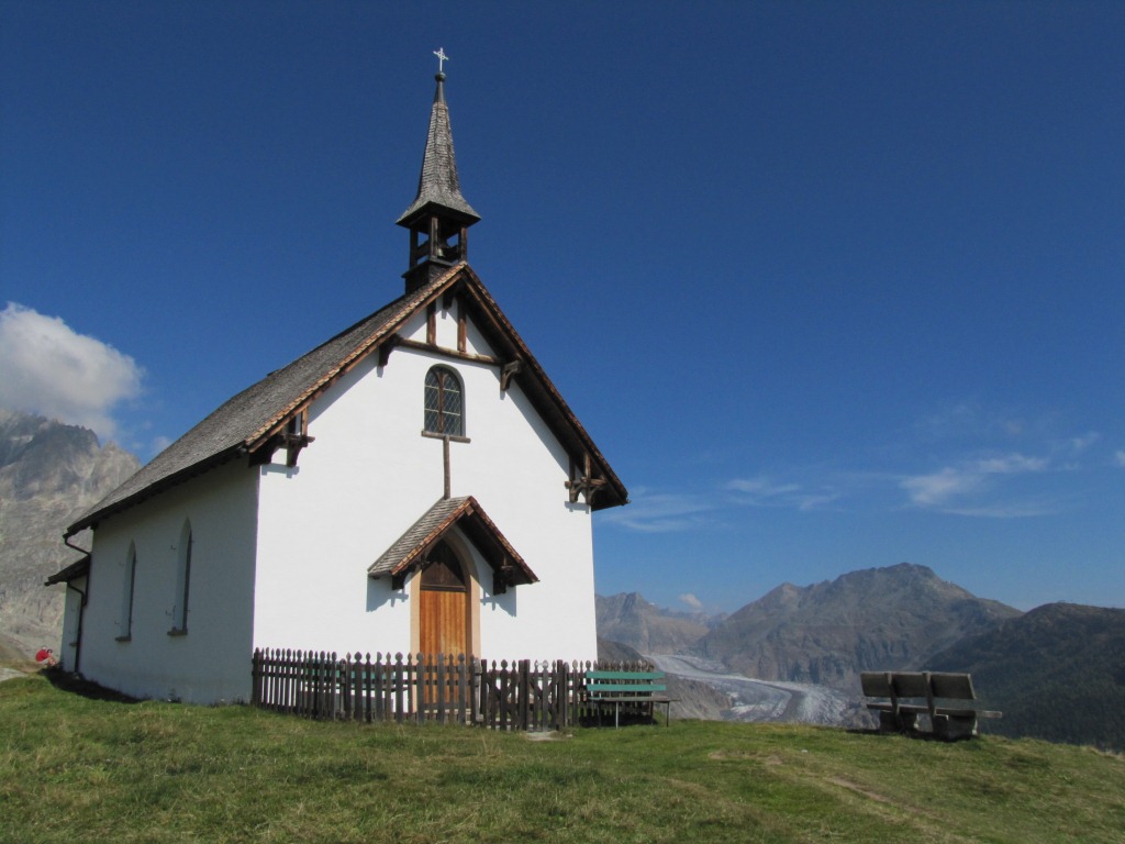 die kleine neugotische, um 1885 gebaute Kapelle beim Hotel Belalp Datum 19.01.2012