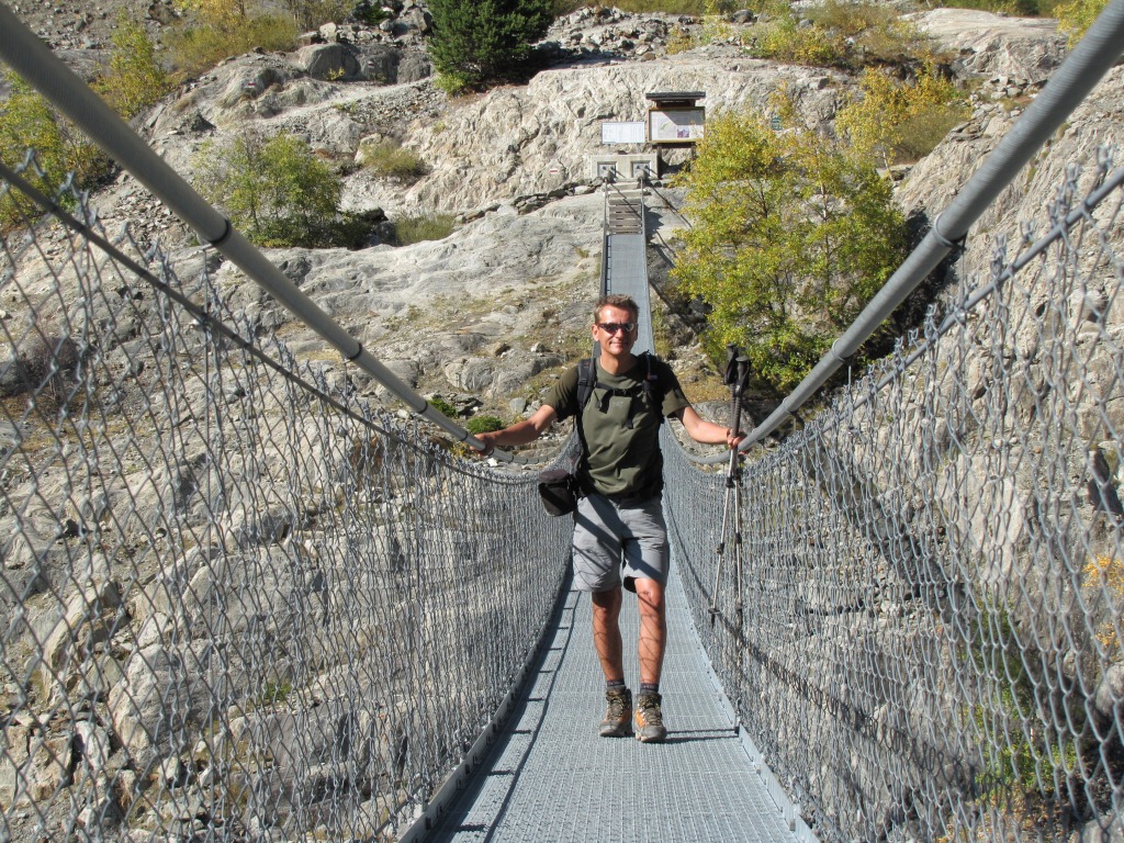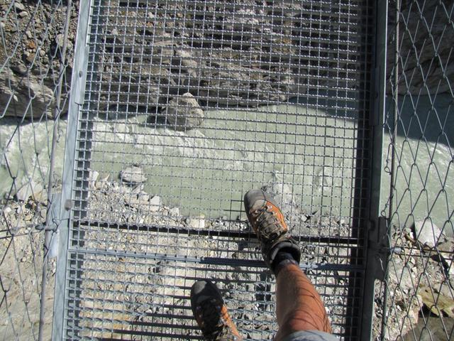 die schöne aus Stahl erstellte Hängebrücke über die Massaschlucht. 1 m breit, 80 m über die Schlucht, 124 m lang Datum 18.01.2012