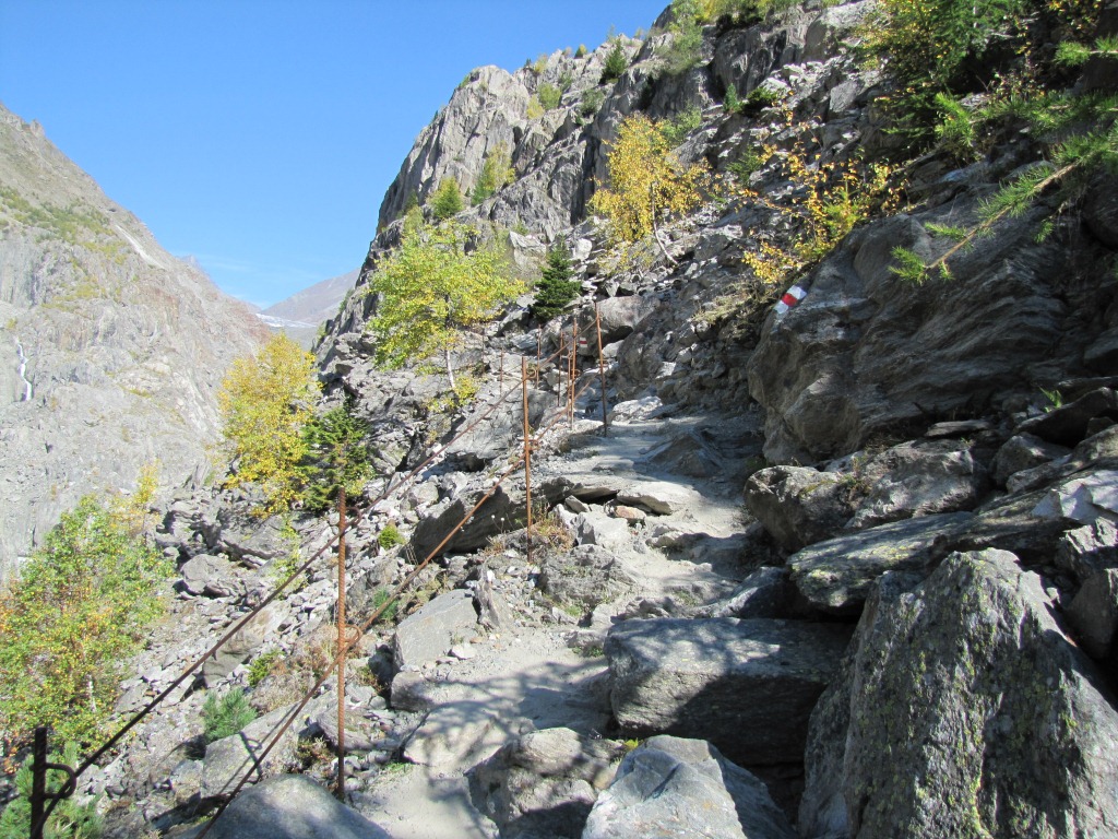 gut ersichtlich der neu erbaute Panoramaweg der zur Oberaletschhütte führt Datum 18.01.2012